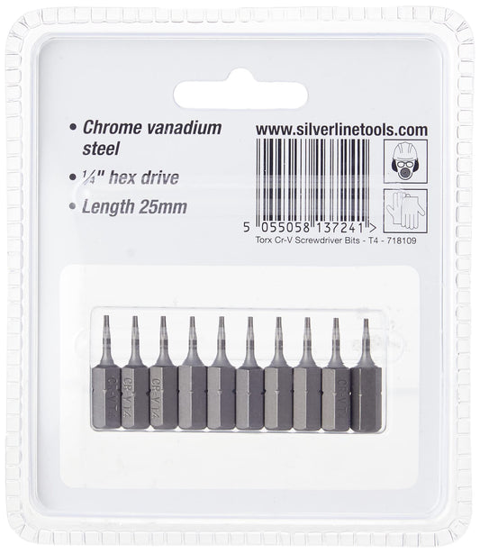 Silverline Torx T40 Cr-V Screwdriver Bits T4 bits with 1/4 inch hex drive 25 mm 10pk