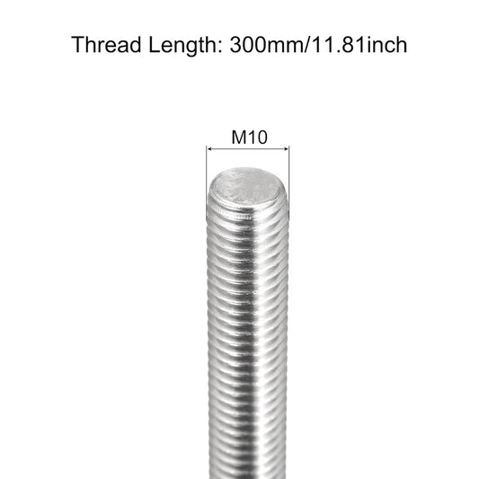 Stainless Steel Fully Threaded Rod M10 x 300mm 1.5mm Pitch Right Hand 2PCS