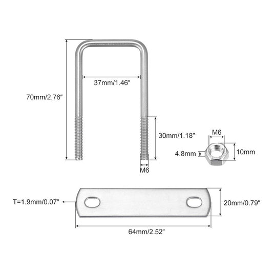 Square U-Bolts M6 304 Stainless Steel 37mm Width 70mm Length Nuts Plates 5PC
