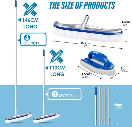Swimming Pool Cleaning Kit Adjustable Brush Set Sponge 18'' for Walls Tiles Floor