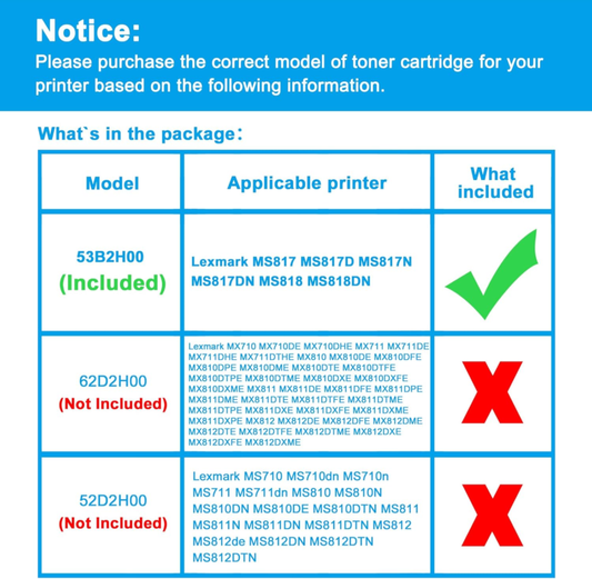 Toner Cartridge Black Replacement fits 53B2H00 53B0HA0 53B2000