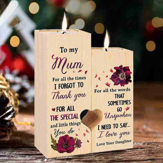 Wooden Candle Holders Mum Gift Anniversary Birthday Heart Shaped Candlestick