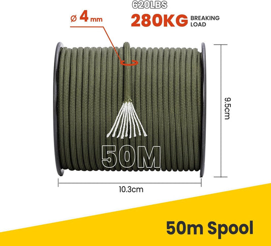 4mm 50M 9 Strands 100% Nylon Rope Type 3 Parachute Cord for Survival Outdoor
