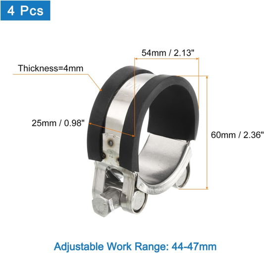 4Pcs T-Bolt Hose Clamp Working Range 44-47Mm Rubber Cushioned Intake Intercooler