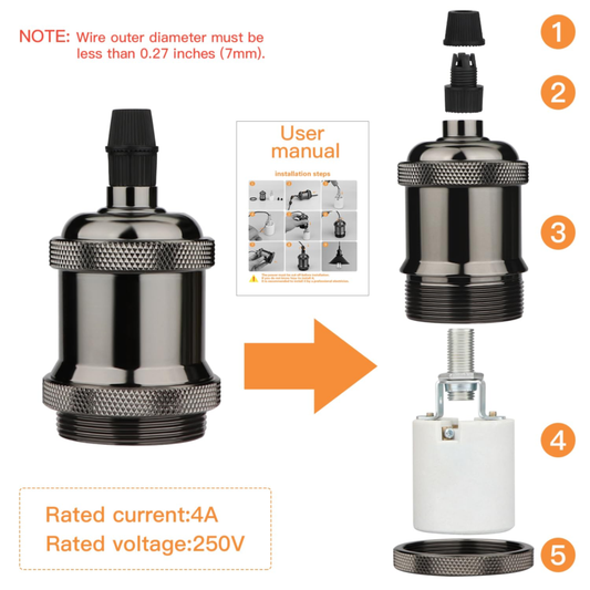 E27 Bulb Light Lamp Holder Socket Ceramic Rated 4A 250V Vintage Gloss Black