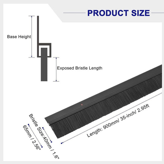 Door Bottom Brush Draft Excluder Seal Strip 900mm Black H-Shape Aluminium