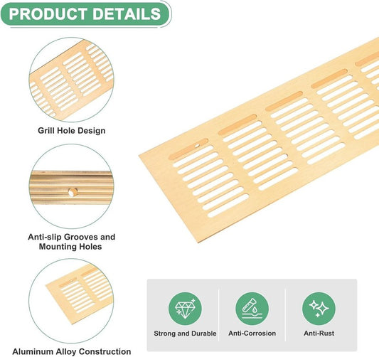 Door Vents 10x3 Inch Aluminum Air Vent Grille Cabinet Wardrobe Gold 2 Pack
