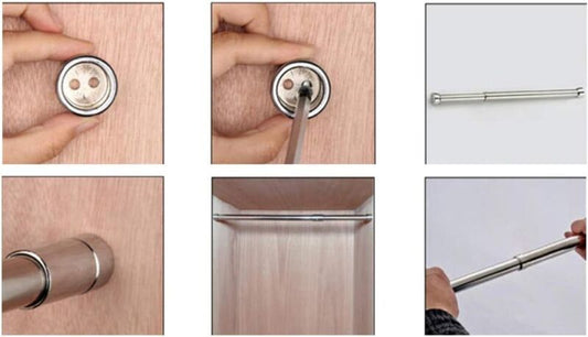 Extendable Wardrobe Rod Stainless Steel Rail Tube with End Sock 50-80 cm