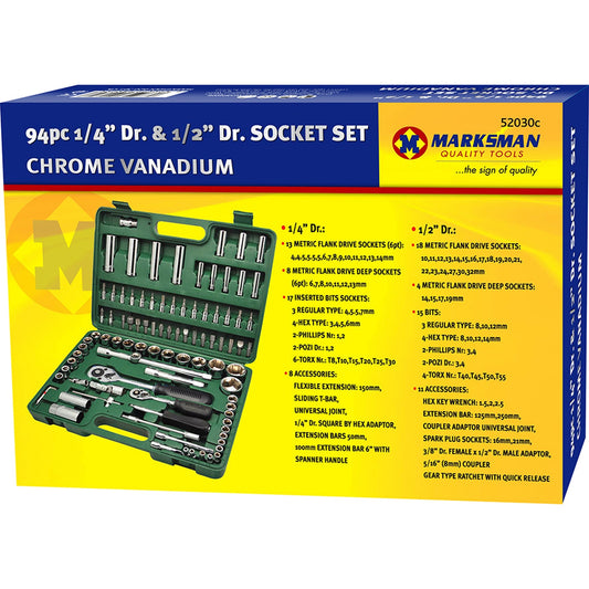 Wrench Socket Set Driver Metric Imperial Spark Hex Metric Essential 94pc