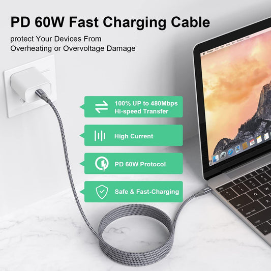 USB C to USB C Charging Cable 1.8M 60W Type C Fast Charging Cable for Phones