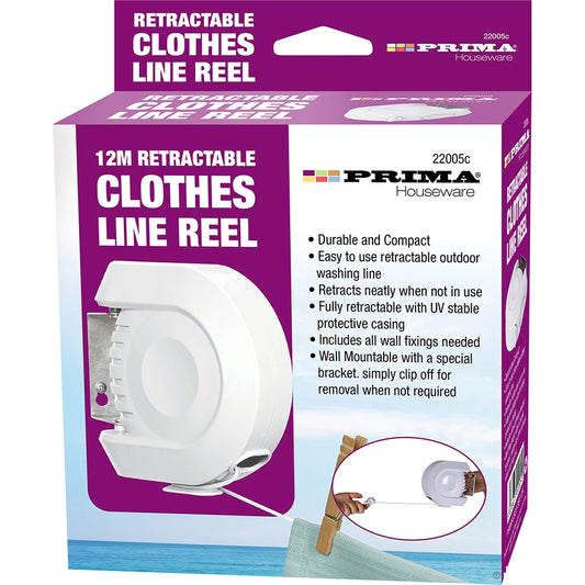 Retractable Clothes Reel Washing Line Wall Mounted Outdoor Drying 12m