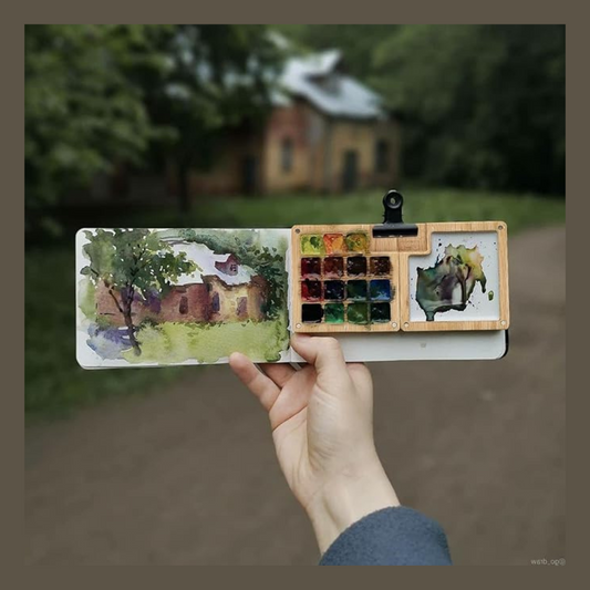 Color Portable Sketchbook Palette 15 Color Wooden Palette Box Watercolours Tray