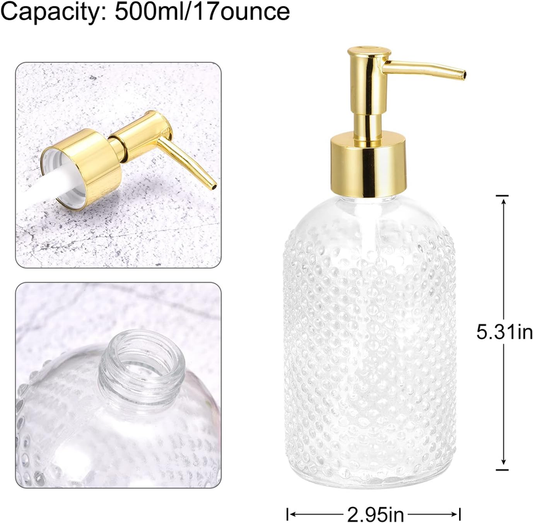 Glass Soap Dispensers Set 2pcs 17oz Clear Pump Bottles for Kitchen Bathroom