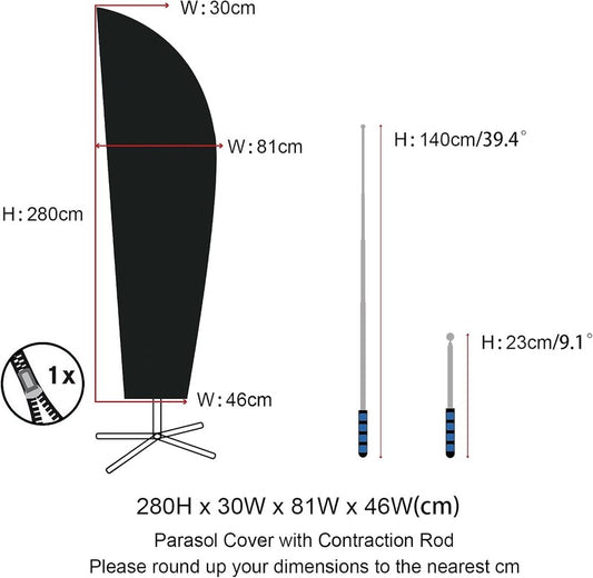 Garden Parasol Umbrella Cover Waterproof Anti-UV Patio Oxford 81x30x46cm Black