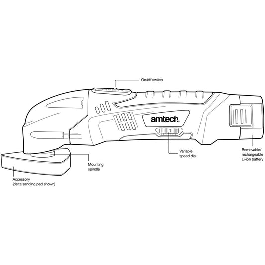 Am-Tech Oscillating Sander Scraper Multi-Tool V6510 1.3 A Battery 230V Red