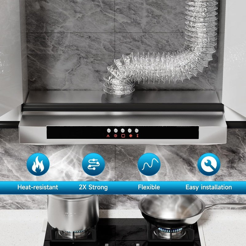 The duct can bend freely to suit tight spaces or long runs, and can be cut to your required length. Includes two stainless steel clamps for secure installation and airtight connection.