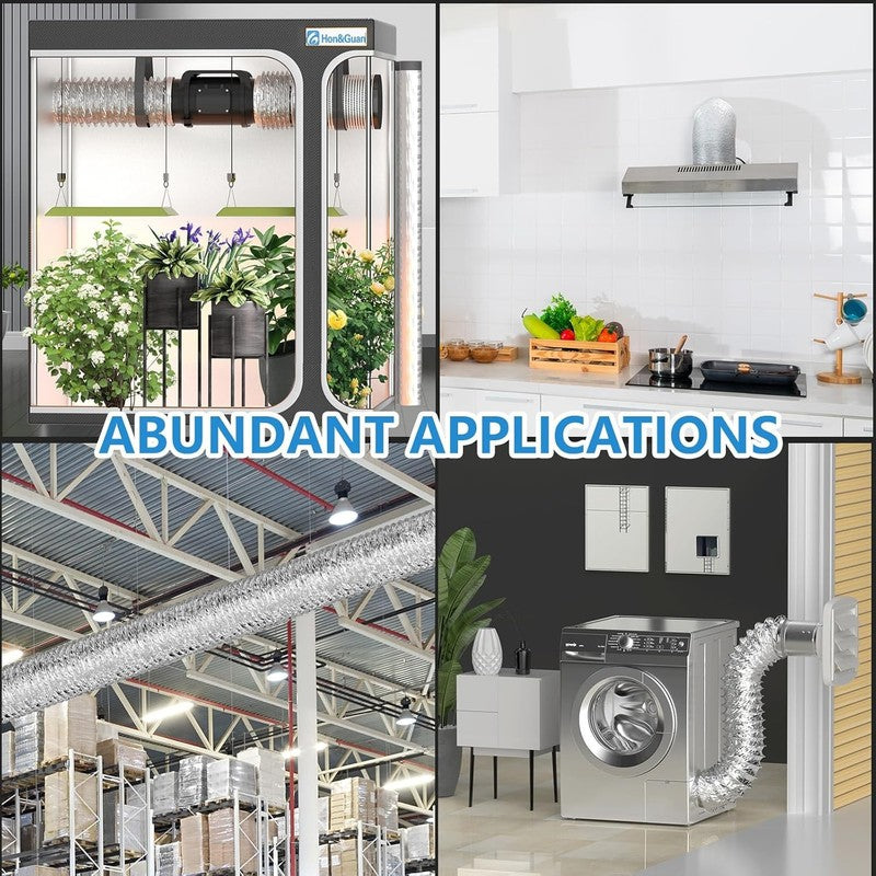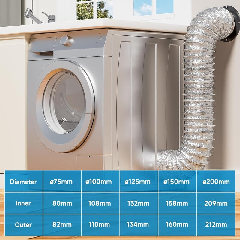 This 150mm Flexible Ducting Hose (3 Metres Fully Extended) is designed for high performance air extraction and ventilation. Built with multi-layer aluminium foil and internal steel wire helix, this duct hose provides strong airflow, heat resistance and long service life. Ideal for dryer vent exhaust, cooker hood extraction, bathroom fans, grow tent ventilation, HVAC systems, AC units, inline fans and air circulation installations.