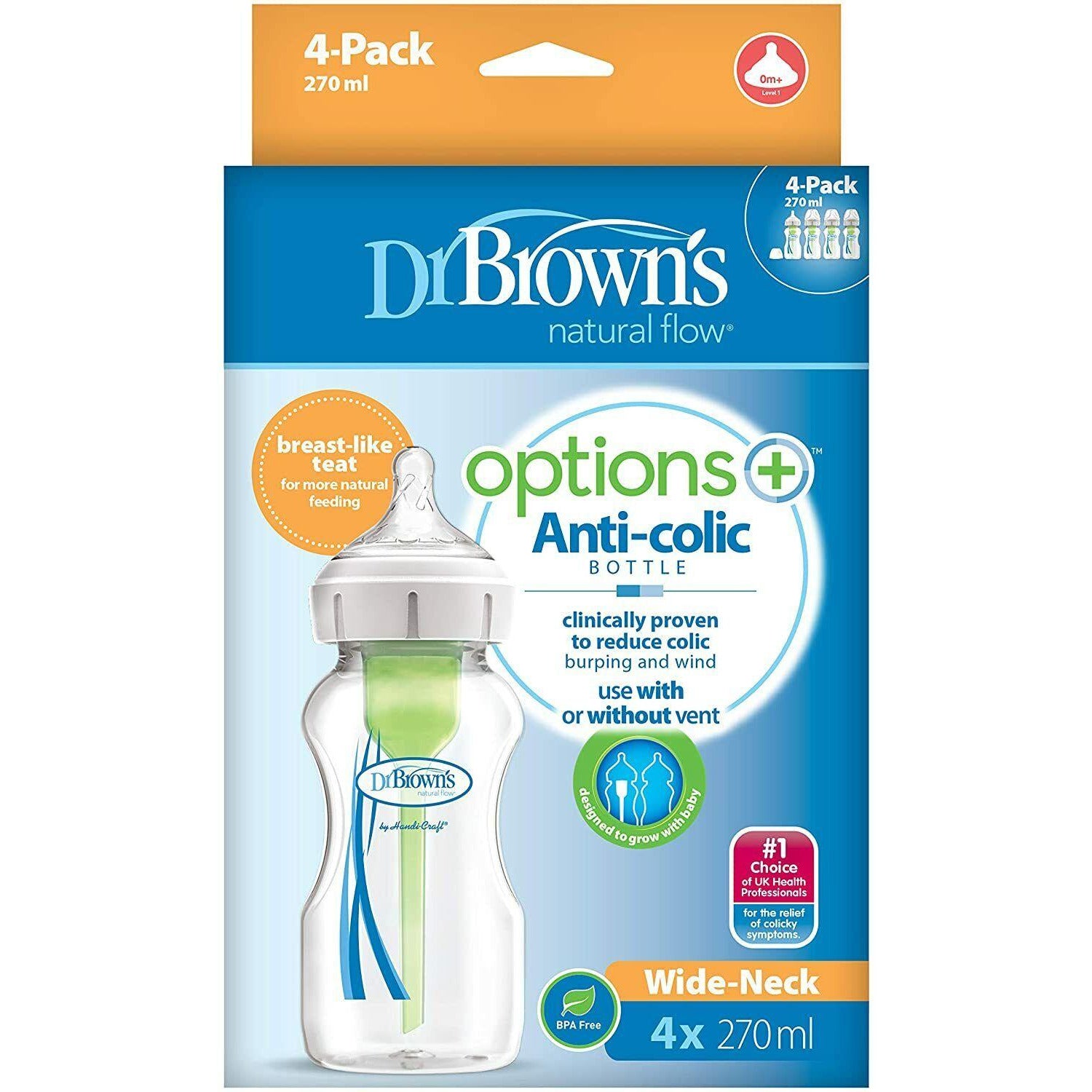 Dr Brown’s Options+ Anti-Colic Baby Feeding Milk Bottles 4 x 270 ml