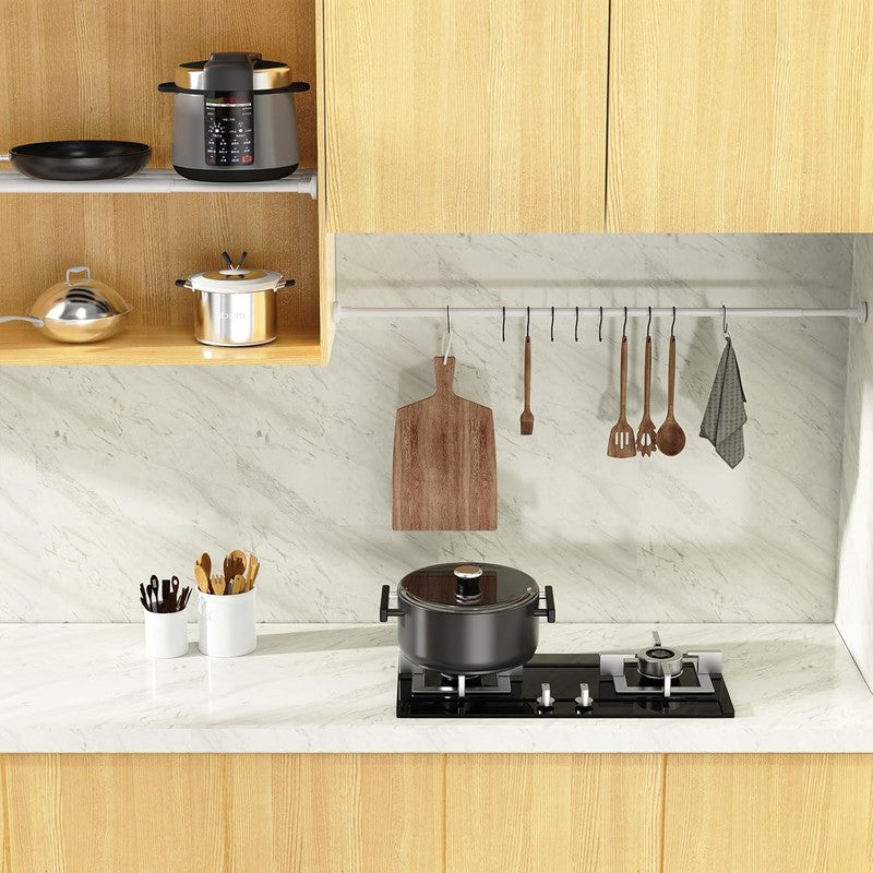 No Drilling Installation – Installs in seconds without tools or screws. Simply extend the telescopic rod to the required length and twist to secure it firmly against the wall. No wall damage, no hassle.