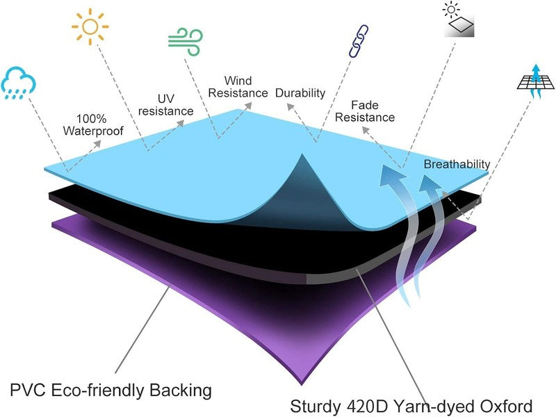 Excellent Waterproof Protection Special coating repels water and withstands 15,000pa pressure, 5 longer lifespan than regular 420D covers.