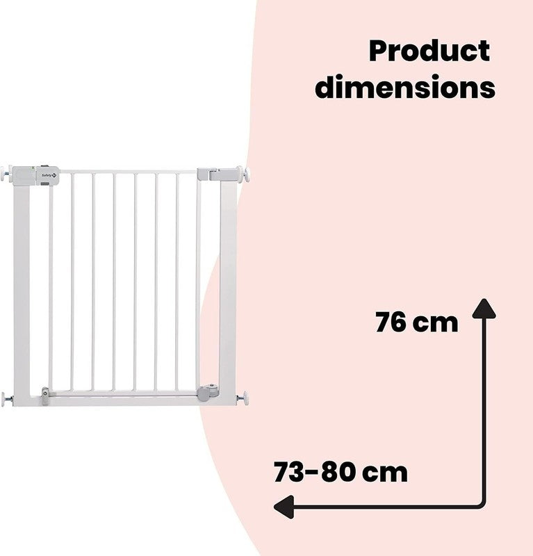 It's a self-closing gate that's suitable for openings between 73cm and 80cm but can be extended up to 136cm with separately available extensions.