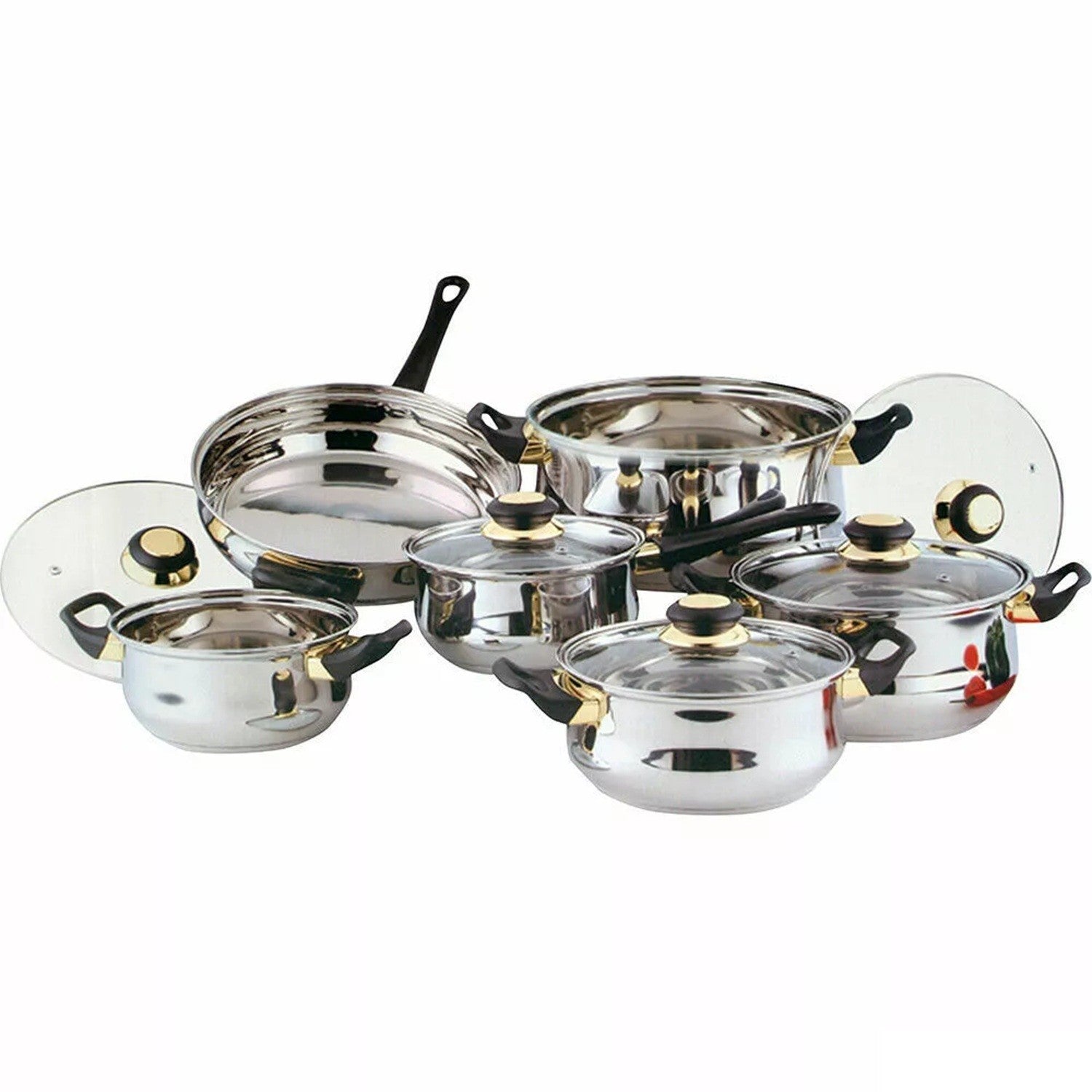 This is a complete, matching stainless steel cookware bundle replaces old mis-matched pots and pans, instantly upgrades kitchen, gives consistent results for family cooking on most stove types, looks premium, cleans fast, lasts long.