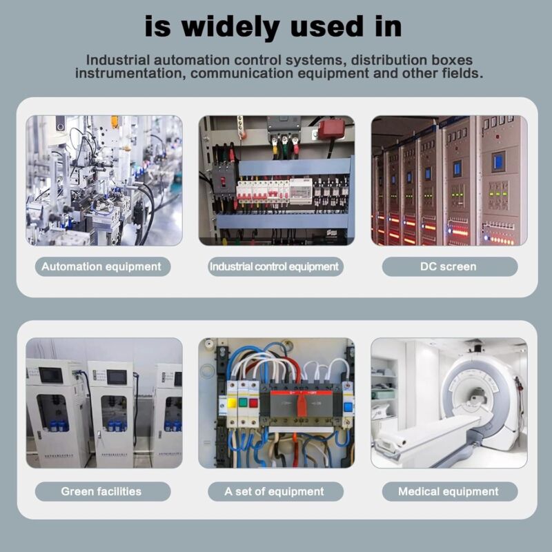 - Main function: The switching power supply converts the input ac power into a stable dc voltage and provides it to equipment and systems. It is widely used in industrial automation control systems, distribution boxes, instrumentation, communication equipment and other fields.
