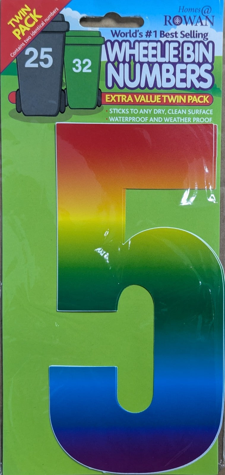 17cm House Number Wheelie Bin Stickers – 2 Pack Waterproof Vinyl Decals